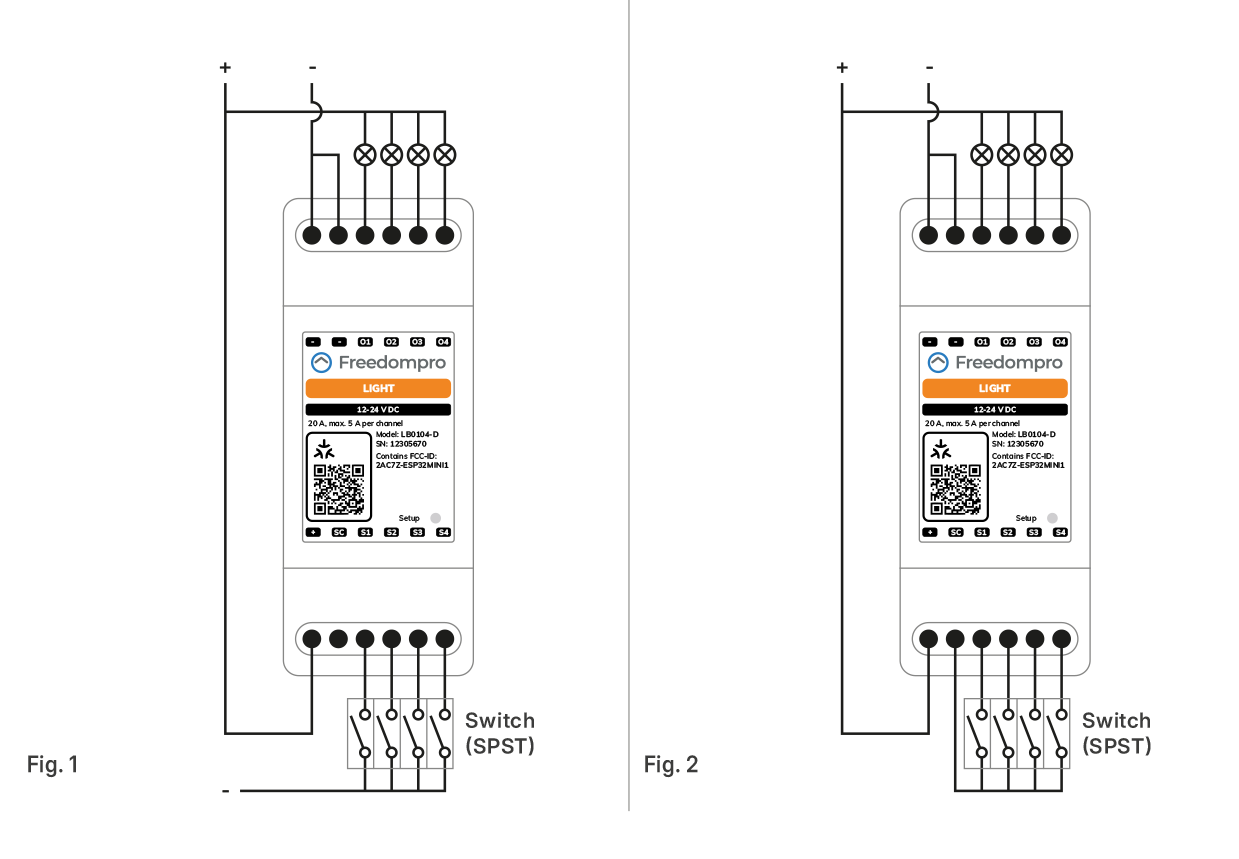 Catalogo > LB0104-D Interruttore WiFi Controlla 4 Luci Smart, Alimentazione 12 V 5 A, Modulo DIN H per Quadro Elettrico