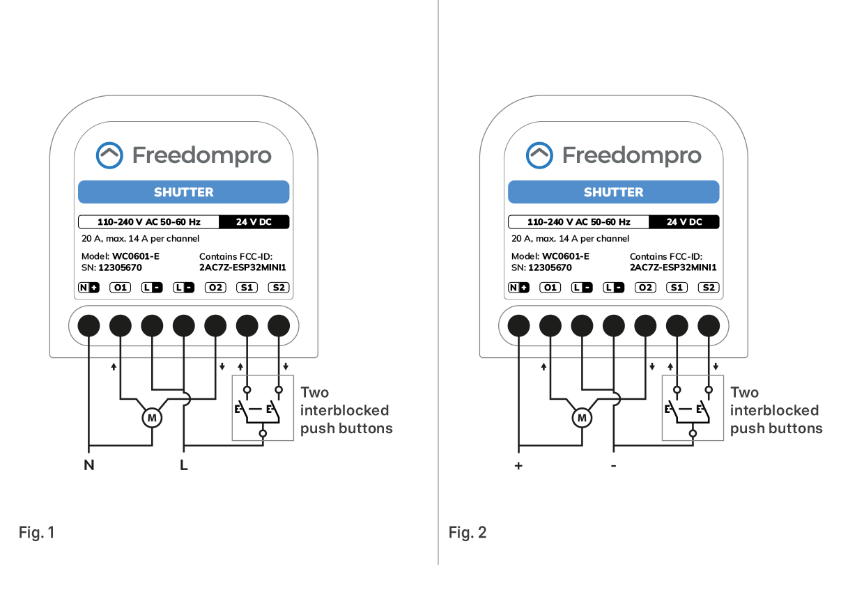 Freedompro WC0601-E è un relè interruttore WiFi MINI progettato per trasformare, automatizzare e rendere smart il controllo di 1 tapparella elettrica. Installato nella scatola da incasso 502/503, questo modulo WiFi ad alimentazione 110-240 V 14 A ti consente di gestire l’apertura e la chiusura di 1 tapparella elettrica direttamente dal tuo smartphone, con comandi vocali o tramite automazioni avanzate, migliorando comfort ed efficienza energetica.
